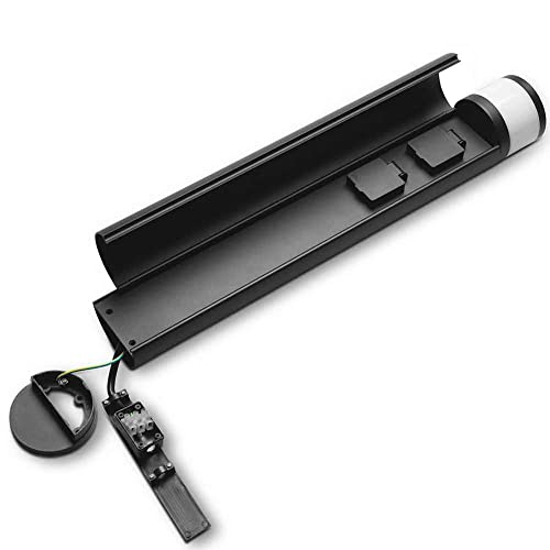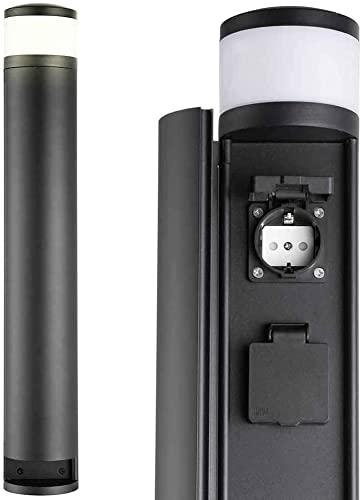 BAKAJI Lampada Paletto Luce da Giardino Bianco Caldo 3000K Palo in Acciaio Illuminazione Esterno con Doppia Presa Shucko a Scomparsa Design Moderno Colore Nero Dimensione 60 x 9 cm
