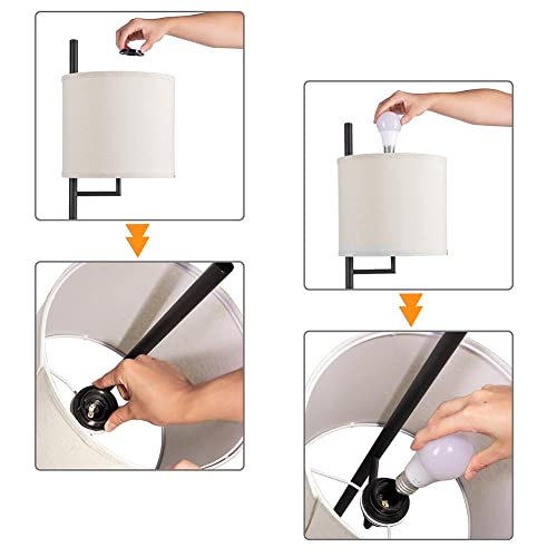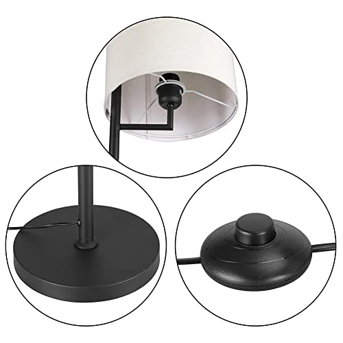 BAKAJI Lampada Piantana da Terra Luce Lampadina E27 Max 60W Base Rotonda Struttura in Metallo Paralume in Tessuto Design Moderno Accensione a Pedale Altezza 178 cm (Nero con Tavolino)
