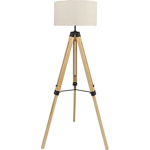 Bakaji Lampada da Terra Regolabile con Base Treppiede in Legno Lampada a Piantana da Lettura Design Moderno con Paralume Faro in Tessuto Lampadine E27 Altezza 145 cm (Beige Stile Scandinavo)