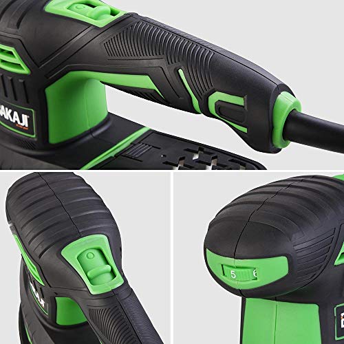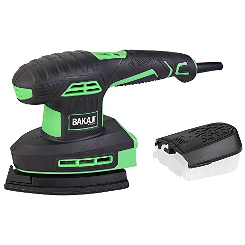 Bakaji Levigatrice Mouse Orbitale di Precisione 2in1 Potenza 250W 12000 rpm con Doppia Piastra Triangolo e Rettangolare Aspiratore Integrato e Vaschetta di Raccolta Polvere con 6 Fogli Abrasivi