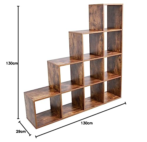 BAKAJI Libreria Scaffale 10 Ripiani Cubi in Legno MDF Effetto Anticato Design Moderno Industriale per Soggiorno Salotto Casa Ufficio Dimensione 130 x 29 x 130 cm