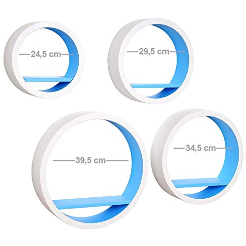 BAKAJI Set 4 Mensole da Parete Moderne Design Rotondo Mensola Scaffale 1 Ripiano in Legno MDF Colore Bianco Varie Dimensioni (Blu)
