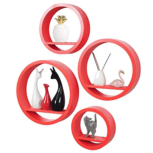 BAKAJI Set 4 Mensole da Parete Moderne Design Rotondo Mensola Scaffale 1 Ripiano in Legno MDF Colore Bianco Varie Dimensioni (Rosso)