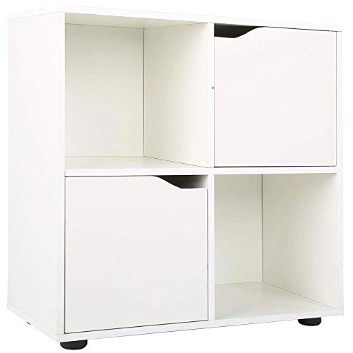 BAKAJI Mobile Armadio Libreria Bassa Design Cubo Moderno Mobiletto Armadietto Scaffale con 4 Ripiani e 2 Ante Dimensione 60 x 29 cm Arredamento Casa Soggiorno Salotto (Bianco)