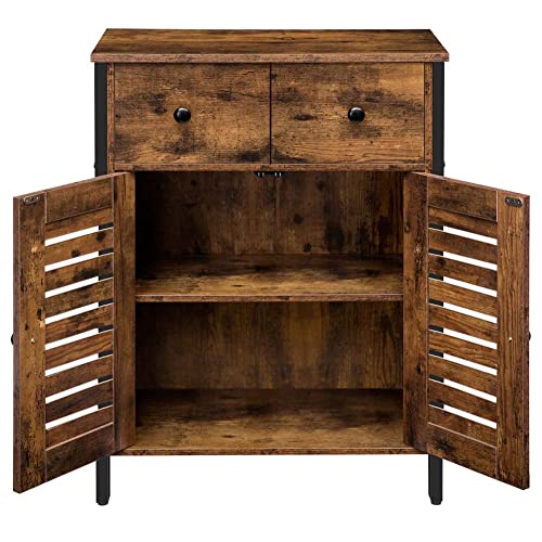 BAKAJI Mobile Madia con 2 Cassetti Doppia Anta e 2 Ripiani Interni Mobiletto Credenza Armadio Multiuso Cucina Bagno Ufficio Design Moderno Industriale in Legno MDF e Metallo 70 x 30 x 80 cm