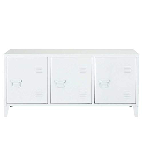 BAKAJI Mobile Mobiletto TV Televisione in Metallo Credenza con 3 Ante Doppio Scomparto Interno Dimensione 40 x 120 x 58 cm Design Moderno Industriale Arredamento Casa Ufficio (Bianco)