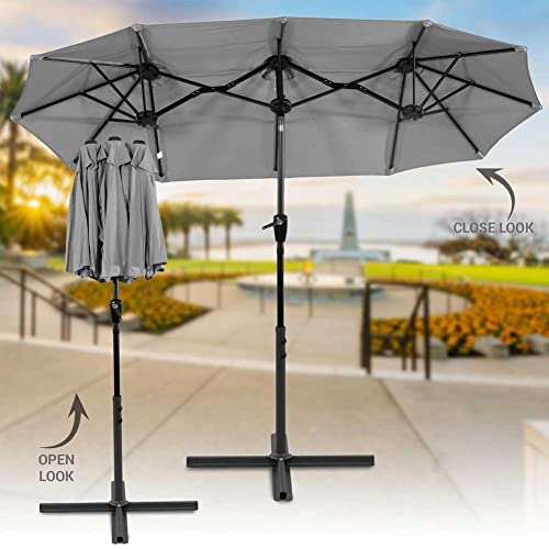 BAKAJI Ombrellone Doppio Ovale da Giardino Palo Centrale 300x150cm Palo Acciaio Chiusura a Carrucola Sistema Air Vent Arredamento Esterno Gazebo Piscina Giardino Terrazzo (Grigio)