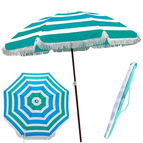 Questo ombrellone è perfetto per la spiaggia, per il giardino e per qualsiasi ambiente esterno donando a quest'ultimo un tocco davvero speciale. I materiali utilizzati e le sue caratteristiche rendono quest'ombrellone un prodotto resistente e di alta qualità che non può assolutamente mancare per chi ama godersi fantastiche giornate di relax al mare. Inclusa nella confezione una comoda sacca con tracolla.