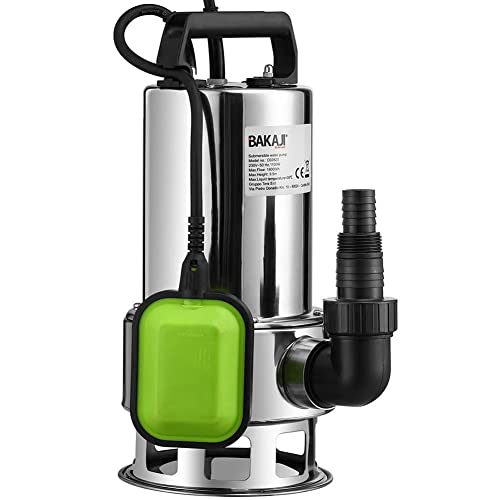La pompa per acque scure Bakaji in Acciaio è un apparecchio di alta qualità, affidabile e potente, ottima per aspirare acqua da stagni, cantieri e cantine allagati e molto altro.