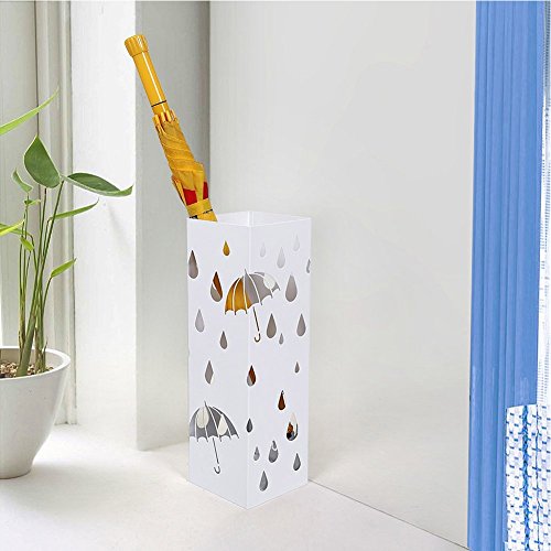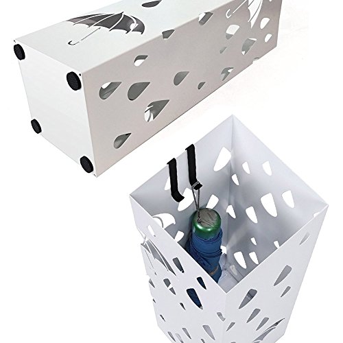 BAKAJI Portaombrelli Stand in Ferro Design Forma Quadrata Colore Bianco Vaschetta Salvagoccia e Ganci per Ombrelli Pieghevoli - 49 x 15 x 15 cm