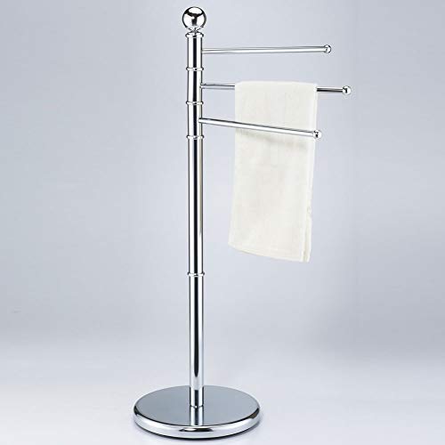 Bakaji Portasciugamani da Terra a Piantana con 3 Aste Porta Asciugamani Girevoli Regolabili e Base Rotonda in Acciaio Cromato Colore Silver Dimensioni 65,5 x 33 x 91 cm