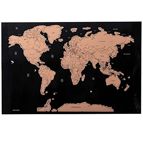 BAKAJI Poster Mappamondo da Grattare Cartina Geografica Mappa del Mondo Scratch Off Dimensione 82,5 x 59,4 cm da Parete Muro Design Moderno Custodia Cilindro e Lima Idea Regalo (Nero)