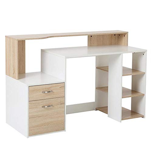 BAKAJI Scrivania con Cassetto e Mobiletto Tavolo da Lavoro Porta Pc Computer in Legno Melaminico Arredamento Casa Ufficio Cameretta (Beige)