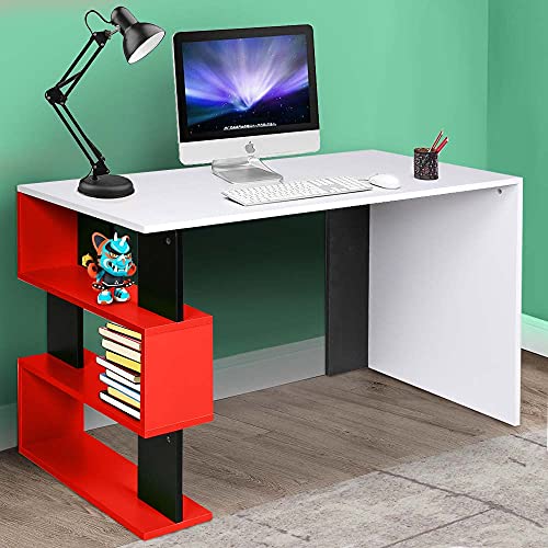 BAKAJI Scrivania con Libreria 3 Ripiani Tavolo da Lavoro Porta Pc Computer Struttura e Piano in Legno MDF Arredamento Casa Ufficio Cameretta Design Moderno Dimensioni 120 x 60 x 75 cm (Rosso)