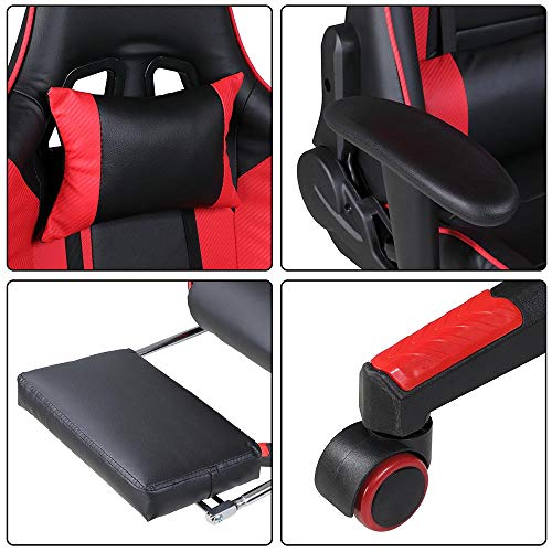 BAKAJI Sedia Poltrona Gaming Scrivana Ufficio Casa in Ecopelle Schienale Reclinabile Cuscino Lombare Poggiatesta Rotazione 360 Gradi Direzionale Altezza Regolabile Base 5 Ruote con Poggiapiedi