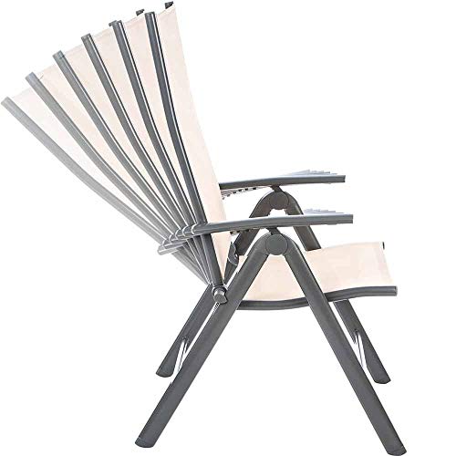 Dimensioni della sedia: 110 x 65 x 60 cm circa - Materiale Struttura: Alluminio - Materiale seduta e schienale: Tessuto texilene - Colore Struttura: Silver - Colore rivestimento: Beige - Schienale regolabile in 5 posizioni - Pieghevole per risparmiare spazio