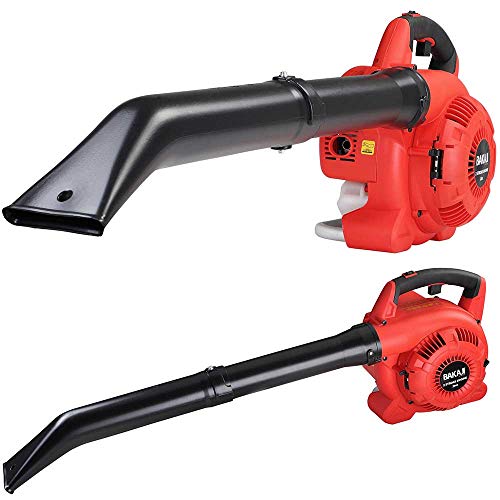 BAKAJI Soffiatore a Scoppio da Giardino Motore a Benzina 2 Tempi 26CC 8500rpm 3 in 1 Aspiratore Trituratore e Soffiatore Aspirafoglie con Sacco di Raccolta 35lt per Manutenzione Spazi Esterni