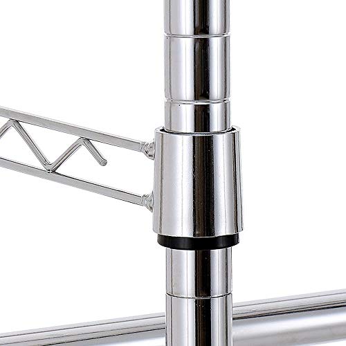 BAKAJI Stand Appendiabiti in Acciaio Cromato per Camera da Letto con Doppia Asta Appendi Grucce Ripiano Regolabili Gancio e Ruote Dimensioni 90 x 45 x 200 cm (Silver)