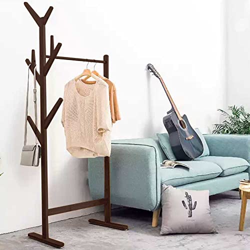 BAKAJI Stand Appendiabiti Struttura in Legno con Asta Attaccapanni e 8 Ganci Arredamento per Camera da Letto e Ingresso Design Moderno Dimensione 65 x 40 x 170 cm (Brown)