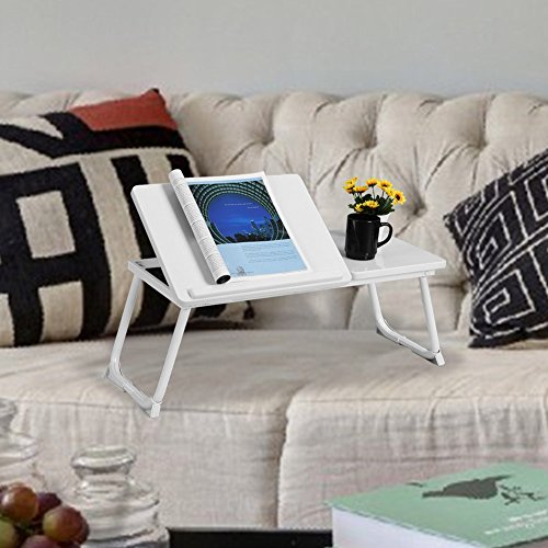 BAKAJI Tavolino Vassoio da Letto Divano per Notebook PC Laptop Pieghevole Leggio 65x30cm, Tavolino Colazione da Letto (Bianco White)