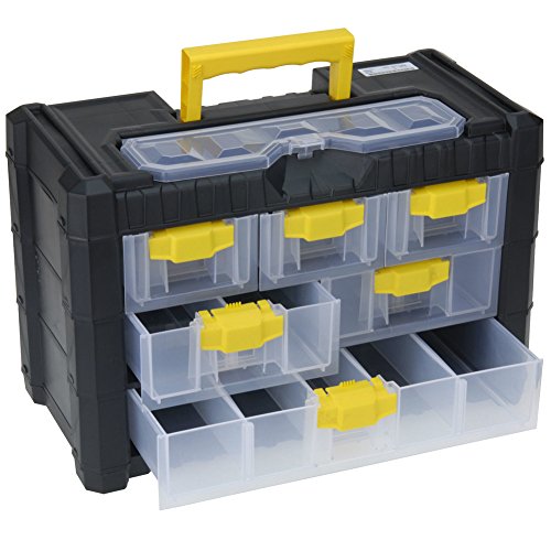 Bakaji Valigetta Cassetta Porta Minuteria In Plastica per Hobby e Fai da Te 6 Cassetti 13 Scomparti Varie Misure Con Manico e Chiusura Antiapertura Dimensione 40 x 27 x 20 cm Colore Nero Giallo
