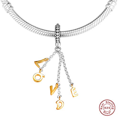BAKCCI 2019 - Ciondolo in argento 925 con scritta "Loved Script", adatto per braccialetti Pandora originali