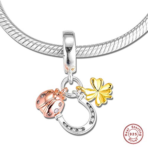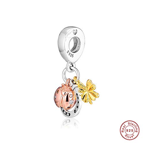 BAKCCI 2019 - Ciondolo a forma di trifoglio e coccinella, in argento 925, adatto per braccialetti Pandora originali