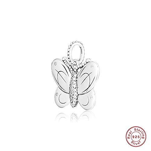 BAKCCI 2019 - Collana con ciondolo a forma di farfalla con zirconia cubica trasparente, in argento 925, per braccialetti Pandora originali