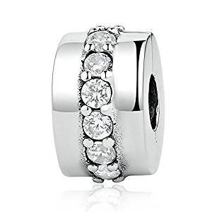 Bakcci Perlina a Clip con Cerchio Brillante, Moda Autunnale Europea, in Autentico Argento 925, Compatibile con Braccialetti Originali Pandora, per Gioielleria e Charm Fai da Te