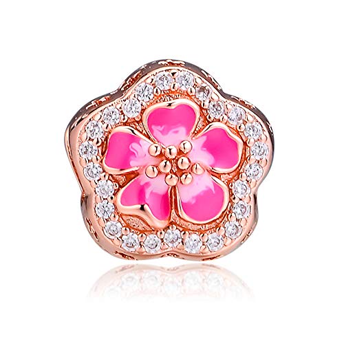 BAKCCI 2019 - Perlina a forma di fiore di pesca, in argento 925, per braccialetti Pandora originali