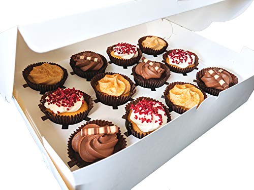 Bakebox Scatole per cupcake, 12 fori, confezione da 10 pezzi, colore: bianco tinta unita con finestra trasparente