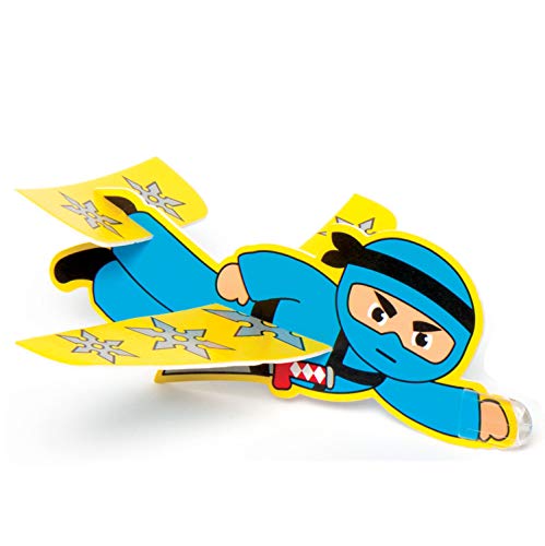Simpatici alianti in polistirolo rivestito di carta facili da assemblare, in 4 design con ninja in missione segreta.