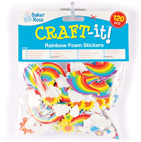 Baker Ross AF399 Coloratissimi Adesivi in Gommapiuma a tema Arcobaleno per Bambini, Ideali per Decorare Bigliettini, Creazioni Fai Da Te e Collage (confezione da 120)