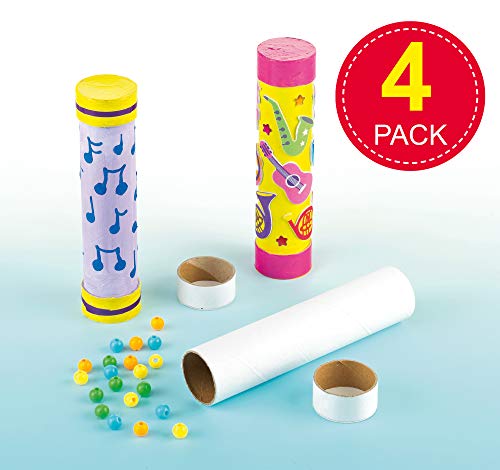 Baker Ross Kit Agitatori Musicali (confezione da 4) perfetti per bambini da decorare e personalizzare, ideali per progetti a scuola e a casa, Colori assortiti