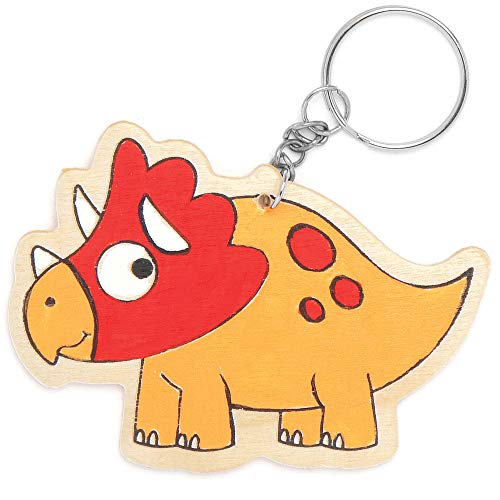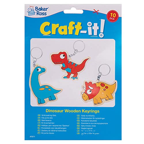 Baker Ross AT671 Portachiavi Dinosauro in Legno da colorare, per progetti di artigianato artistico per bambini (confezione da 10), assortiti