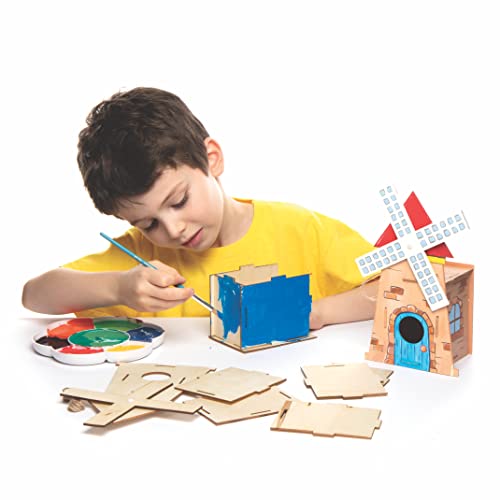 Baker Ross AT864 Kit Casetta Uccellini in Legno Mulino a Vento, per progetti di artigianato artistico per bambini (confezione da 2), assortiti