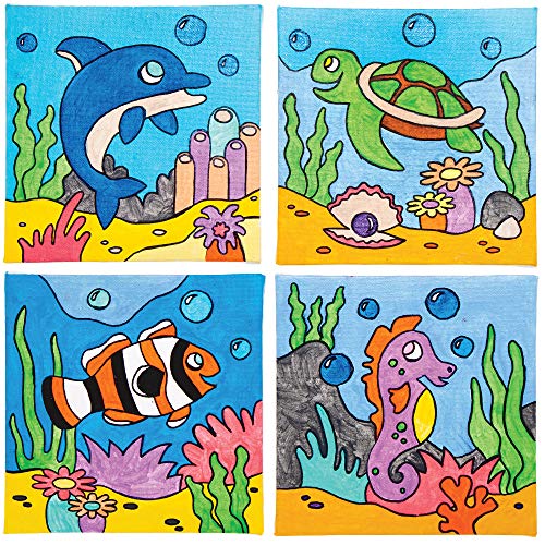Baker Ross AT940 Tele da Colorare Amici Marini, per progetti di artigianato artistico per bambini (confezione da 4), assortiti