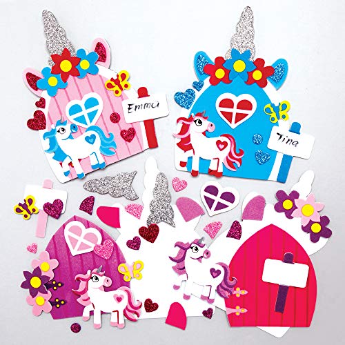 Baker Ross AX667 Kit Porte Fatate Unicorno in Legno Confezione da 4, Arti e mestieri creativi & Kit Calamita Principessa Mix & amp;