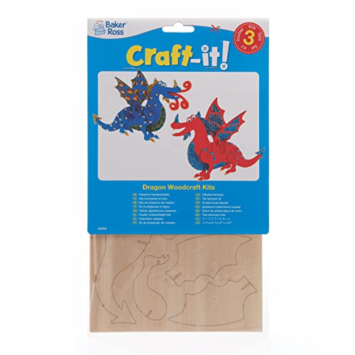 Baker Ross AX842 Kit Drago di Legno - Confezione da 3, per i Bambini da Dipingere, Decorare ed Esporre per le Celebrazioni del Capodanno Cinese