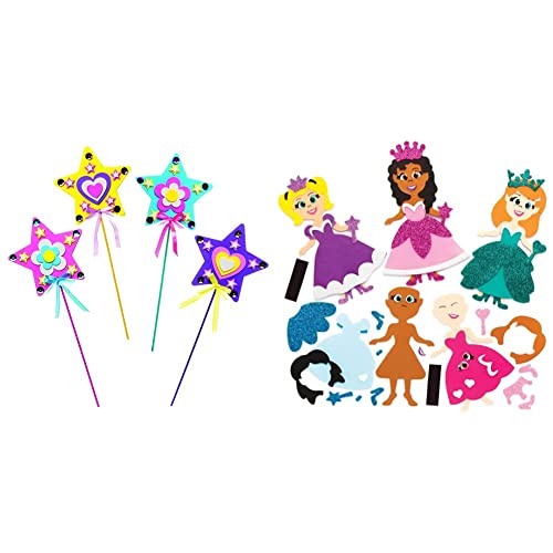 Baker Ross Kit per bacchette magiche (confezione da 4) - Creazioni per bambini, per travestirsi o per accessoriare costumi & Kit Calamita Principessa Mix&Match