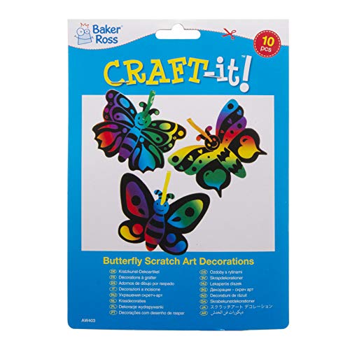 Baker Ross Calamite scratch art con farfalle (confezione da 10) - Carta arcobaleno con stilo per bambini, da decorare, (AW403)