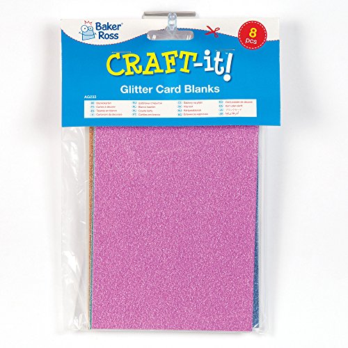 Baker Ross Cartoncini per Bigliettini Glitterati con Buste per Bambini, Ideali per Creare e Personalizzare Biglietti Pasquali (Confezione da 8)
