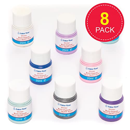 Incluso nella confezione: Ogni confezione contiene 8 barattoli di vernice decorativa in 8 colori invernali assortiti (azzurro, blu scuro, viola chiaro, rosa, viola scuro, blu ghiaccio, bianco e argento), perfetti per tutti i tuoi progetti artistici e artigianali. 20 ml per vasetto