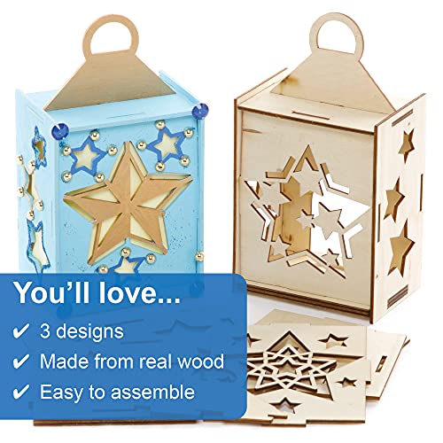 Baker Ross FE839 Kit Lanterne di Legno Stella per Bambini - Confezione da 3, Set di Artigianato in Legno per Bambini, Attività Creative per Bambini da Colorare, Decorare ed Esporre