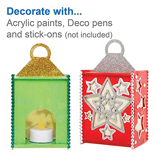 Set Dipingi il Tuo per Bambini: Semplicemente assembla tutti i pezzi di legno e crea la tua lanterna favolosa, decorala poi con i colori acrilici, pennarelli Deco e gemme (venduti separatamente). NOTA: Usa solo con i nostri lumini LED (non inclusi).