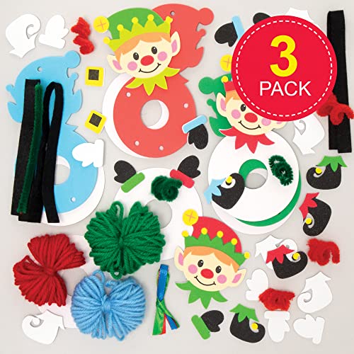 Baker Ross FE965 - Set di 3 pomponi natalizi per elfi, decorazioni natalizie, pompon per bambini, decorazioni e visualizzazioni, attività creative per bambini, elfi