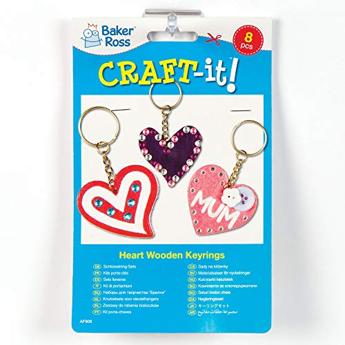 Baker Ross Portachiavi con Ciondolo in Legno a Forma di Cuore per Bambini, da Ideare, Dipingere e Decorare per San Valentino o la Festa della Mamma (confezione da 8)