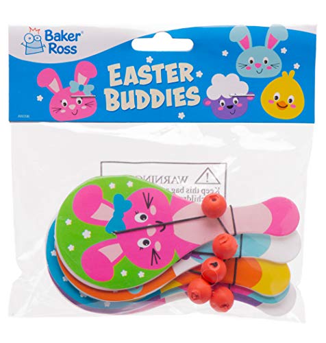 Baker Ross Racchette con Elastico e Pallina a Tema Amici pasquali (Confezione da 5) - da Inserire in Buste Regalo pasquali o Come regalini per Bambini