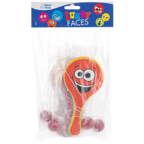 Baker Ross Racchette con Elastico e Pallina Faccine Buffe(confezione da 5)