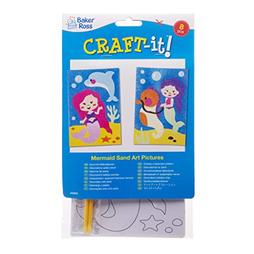 Baker Ross- Set di 8 Immagini di Sabbia di Sirena, per Decorare ed esporre i Bambini, Colore Assortiti, AW608